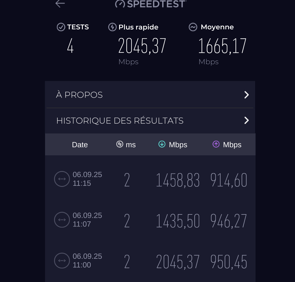 Avec tous ses changements et une reset usine de la box, j'ai à peine gagné 700Mo de connexion en descendant et 0 en montant.